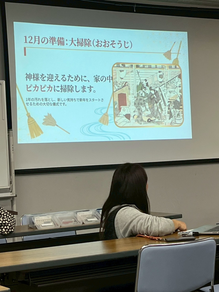 日本の大掃除や門松・しめ縄について学びました。